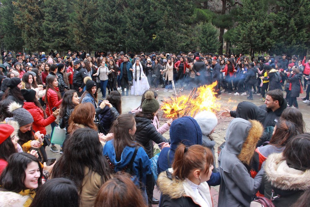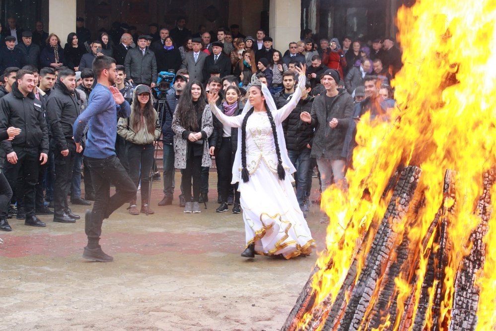Canveten.az xəbər verir ki, Bakı Dövlət Universitetinin həyətində İlaxır çərşənbə münasibətilə tədbir keçirilib. Hava şəraitindən asılı olmayaraq, universitetin müəllim və tələbə heyəti bayram tədbirinə böyük coşqu ilə qatılıblar. Bakı Dövlət Universitetinin rektoru Elçin Babayev kollektivi təbrik edib, xoşbəxtlikvə firavan həyat arzulayıb. Ərəb filologiyası kafedrasının müdiri, akademik Vasim Məmmədəliyev Novruzun yenilik, təravət, dost və ülfət bayramı olduğunu qeyd edərək təbriklərini çatdırıb. Yaşlı, orta və cavan nəslin nümayəndələrinin iştirakı ilə möhtəşəm Novruz tonqalı alovlandırılıb və tədbir tələbələrin tonqal ətrafında dövrə vuraraq “Yallı” rəqsini ifa etmələri ilə başa çatıb. ! © Müəllif hüquqları qorunur ! Məlumatdan istifadə etdikdə istinad mütləqdir ! Məlumat internet səhifələrində istifadə edildikdə müvafiq keçidin qoyulması mütləqdir !!! ŞƏRHLƏR : ( Sos.şəbəkədə gedən yazışmanin FOTO-ƏKSİ. Məzmun və qramatik səhvlərə görə redaksiya məsuliyyət daşımır )