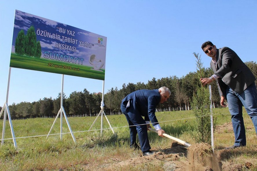 “Bu yaz özün bir təbiət yarat!” devizi ilə Ekologiya və Təbii Sərvətlər Nazirliyi tərəfindən başladılan yaz ağacəkmə kampaniyası çərçivəsində jurnalistlər bu dəfə Sumqayıt şəhərinin Nəsimi parkında ağac əkib. 27 aprel 2019-cu il tarixində keçirilən aksiyada 100-dən artıq media numayəndəsinin iştirakı ilə 300 müxtəlif cinsli ağac tingi əkilib, son illər yaşıllıqlar şəhərinə çevrilən Sumqayıtın təbiətinə daha bir töhfə verilib. Ekoloji vəziyyətin yaxşılaşdırılması, yaşıllıqların artırılması və ağac əkilməsinin təşviqi məqsədilə keşirilən aksiyada Ekologiya və Təbii Sərvətlər Nazirliyinin, Sumqayıt şəhər İcra Hakimiyyətinin, şəhər ictimaiyyətinin nümayəndələri də iştirak edib. Qeyd edək ki, əkilən ağac tingləri ETSN-nin Azəryaşlandşaft ASC və Meşələrin İnkişafı Departamentinin tinglik sahələrində yetişdirilib. ETSN yazağacəkmə aksiyalarında istirak edən bütün təşkilatlara, ictimaiyyət və media nümayəndələrinə öz təşəkkürünü bildirir və növbəti ağacəkmə kampaniyalarının daha da kütləviləşəcəyinə ümid edir.