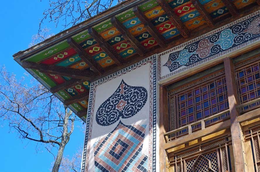 Sarayın ümumi memarlığının onun eksteryerini və interyerini bəzəyən bəzək elementəri – monumental rəsm, ornamental kompozisiya və şəbəkə ilə vəhdətinin yaratdığı qeyri-adi gözəlliyin kökündə sadalanan bədii vasitələrin duyğulandırıcı vəhdəinin əldə olunması durduğundan, memarla təsviri və dekorativ tətbiq sənət ustalarının birgə yaradıcılığının məhsulu olan tikili unikal qürurverici-mənəvi qaynaq kimi qəbul olunur.