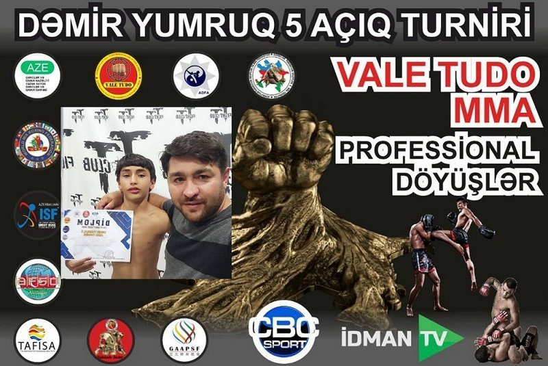 Shootboxe MMA Federasiyası tərəfindən 40 kiloqram çəki dərəcəsində Azərbaycanda ilk dəfə - Bakı şəhərinin Xəzər rayonunda Vale Tudo, MMA professional qəfəs döyüşü üzrə V açıq rayon turniri keçirilib. “Dəmir yumruq” adlı turnirdə Masallı rayonunun “Ərkivan MMA” klubunun yetirməsi, 2008-ci il təvəllüdlü idmançı Mirhüseyn Bağırov ikinci yerin sahibi olub. Qeyd edək ki, Mirhüseyn Bağırov bu günədək 4 dəfə yarışlarda iştrak edib ki, bu döyüşlərin üçündə rəqiblərlə üz-üzə mübarizədən qalib kimi ayrılıb. Məlumat üçün bildirək ki, Shootboxe MMA Federasiyasının prezidenti Natiq Quliyev, vitse-prezidenti Rəmzi Bağırovdur. Akif AĞAYEV, Azərbaycan İdman Jurnalistləri Assosiasiyasının üzvü.