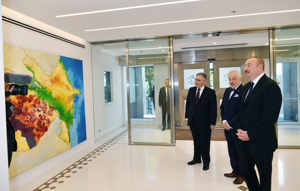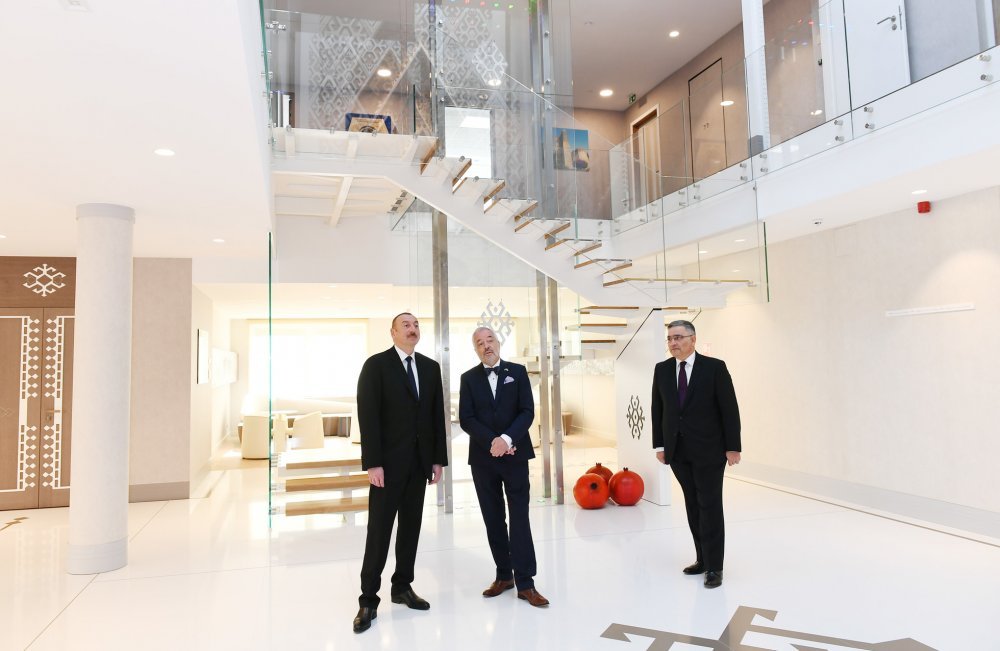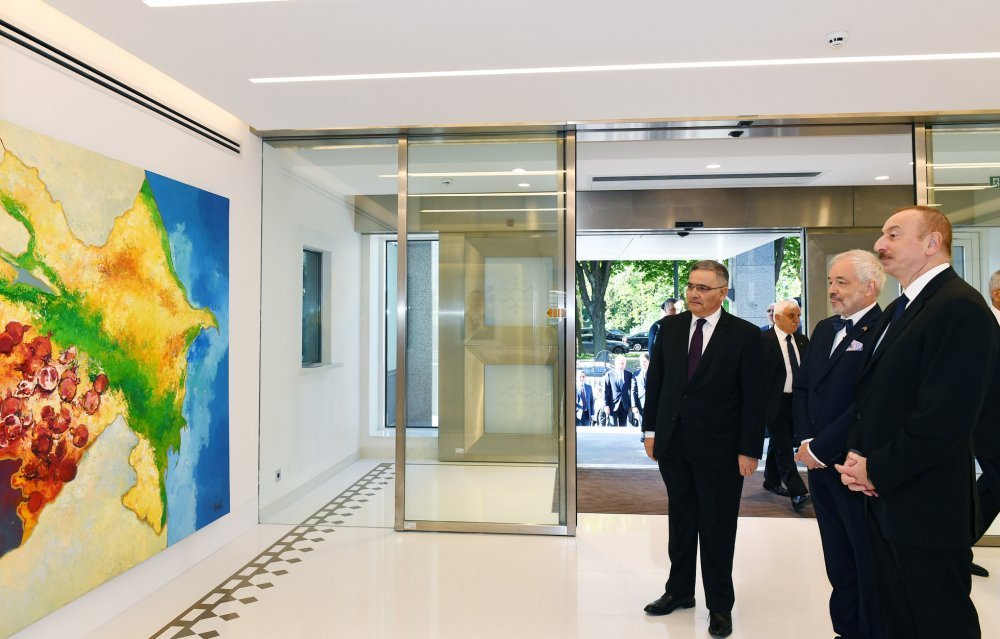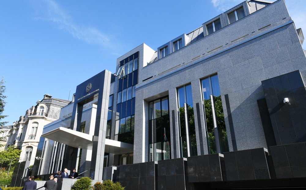 14 мая Президент Азербайджанской Республики Ильхам Алиев принял участие в открытии в Брюсселе нового здания посольства нашей страны в Королевстве Бельгия. Посол Азербайджана в Бельгии Фуад Искендеров и дизайнер здания, известный бельгийский архитектор Филипп Вангеревеге проинформировали главу государства о проделанной работе. Здание, находящееся на проспекте Тервурен Брюсселя было приобретено в 2014 году посольством Азербайджанской Республики в Королевстве Бельгия, внутри осуществлен капитальный ремонт, обновлен фасад. Здание расположено недалеко от европейских институтов, рядом с парком Парментье, на проспекте, где находятся многочисленные дипломатические миссии. Президент Азербайджана разрезал ленту, символизирующую открытие здания. Глава государства ознакомился с созданными в здании условиями. Вход в здание украшен государственными символами. Здесь представлены фотоснимки азербайджанских ковров, хранящихся в знаменитых музеях различных городов мира, а также на примере тебризского ковра 1870 года – ковер ручной работы. Во внутреннем оформлении отведено место гобустанским наскальным рисункам. Первый и второй этажи здания предназначены для рабочих кабинетов посольства. Кабинеты посла, советников и других сотрудников, а также работников консульской службы оснащены всем необходимым оборудованием. Словом, в здании имеются все условия для плодотворной работы сотрудников. Здесь также находятся квартиры работников посольства. Глава государства сфотографировался на память с сотрудниками посольства. Х Х Х 14 мая завершился рабочий визит Президента Азербайджанской Республики Ильхама Алиева в Королевство Бельгия.