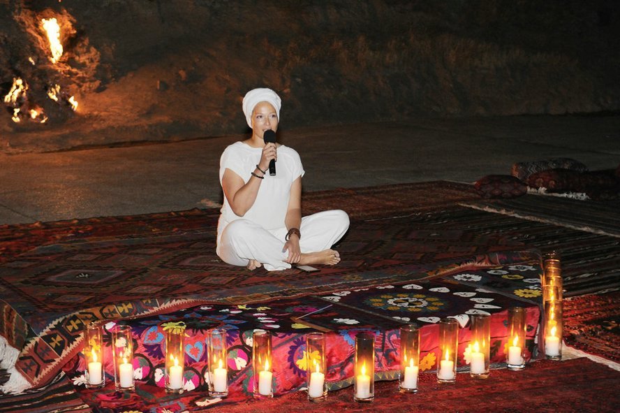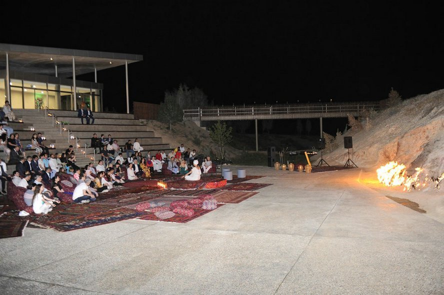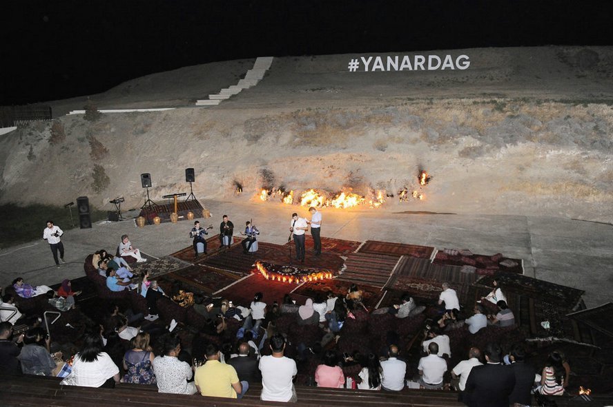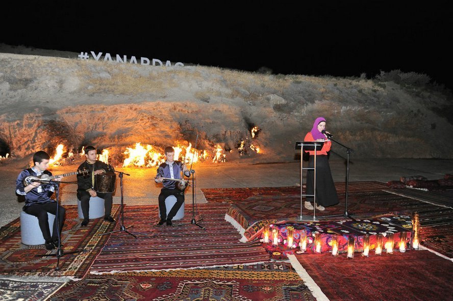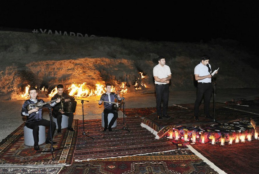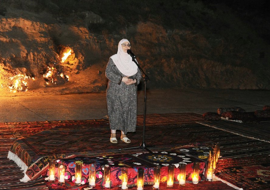 7 июля в Государственном историко-культурном и природном заповеднике «Янардаг» в рамках литературного проекта «Слово» состоялся вечер йоги и поэзии. В мероприятии приняла участие вице-президент Фонда Гейдара Алиева Лейла Алиева. Очередная тема проекта была посвящена демонстрации особой связи между словом, телом и душой человека. Выразив признательность участникам, руководитель проекта – поэтесса Нигяр Гасанзаде представила выступающих. Было сообщено, что проведение мероприятия в седьмой день седьмого месяца – не случайно. Это олицетворение мистической сути цифры «7». В этот вечер поэзия и йога составят единство. Участники медитировали посредством специальных движений йоги, направленных на достижение гармонии тела и природы. Этому общению способствовали внутренняя уравновешенность и стабильность. Наша соотечественница Мира, проживающая в Амстердаме, продолжила сессию йоги, исполнив древний индийский танец. Затем началась художественная часть. Братья Фирдовси и Мехман Расуловы, Нигяр Гасанзаде прочитали свои стихи под звуки музыки. За ними свои стихи на азербайджанском и русском языках прочитали другие молодые поэты. В заключение Лейла Алиева прочитала свое стихотворение. Участники сфотографировались с Лейлой Алиевой на память.