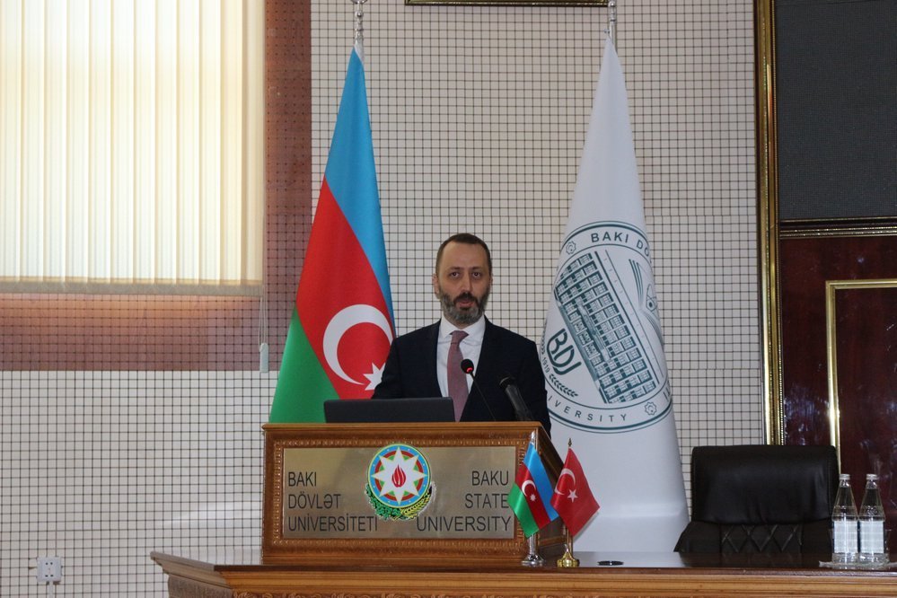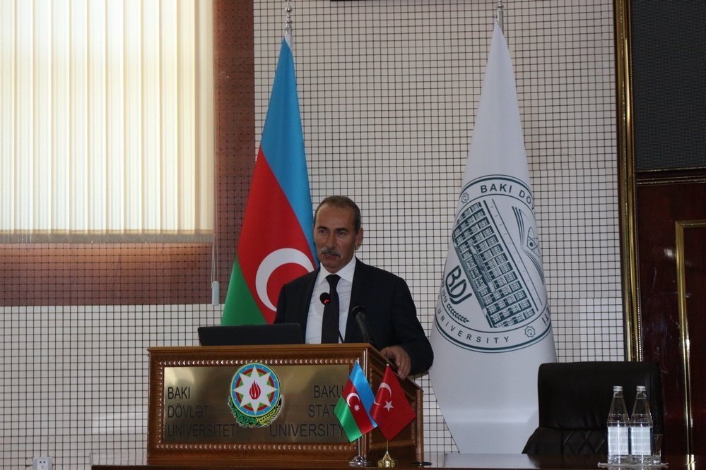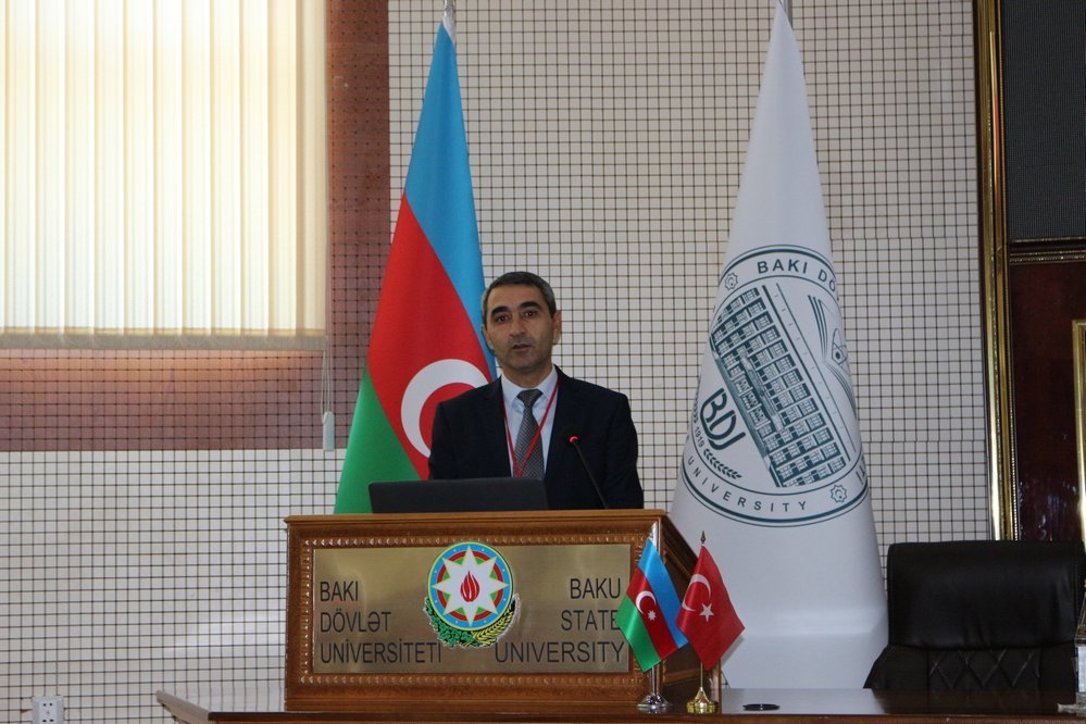 В Бакинском государственном университете (БГУ) прошел Международный симпозиум Насими «Послы культуры тюркского мира», посвященный 650-летию со дня рождения Имаддеддина Насими. Симпозиум, организованный совместно БГУ и Университетом Сивас Турции, открыл проректор вуза по науке и инновациям, профессор Айдын Кязимзаде. Он затронул важную роль Имаддеддина Насими в культуре и литературе народов Востока и Запада, коснулся многочисленных мероприятий, проведенных после объявления 2019 года в Азербайджане «Годом Насими». Обозначив симпозиум как отношение к общим ценностям, Айдын Кязимзаде пожелал успехов его работе. Ректор БГУ Эльчин Бабаев, отметив работу по изучению и пропаганде в стране наследия великого азербайджанского поэта по инициативе общенационального лидера Гейдара Алиева, подчеркнул важность Распоряжения Президента Ильхама Алиева об объявлении 2019 года в Азербайджане «Годом Насими» в честь 650-летия Имадеддина Насими. Эльчин Бабаев, напомнив, что в штаб-квартире ЮНЕСКО в Париже в 2017 году был отмечено 600-летие со дня смерти большого мастера слова, также обратил внимание на тот факт, что впервые в нашей стране был организован фестиваль поэзии, искусства и нравственности - Насими. По мнению Эльчина Бабаева, весь тюркский мир гордится Насими, творчество которого отражает культурное разнообразие и гуманистические идеи. Ректор БГУ выразил уверенность в том, что симпозиум позволит лучше изучить богатое наследие Насими и внести особый вклад в развитие наших научных, литературных и культурных связей. По словам Эльчина Бабаева, Насими начал свою деятельность с лирических стихов, но позже создал немало произведений на общественно-политические темы. Отметив важность творчества Насими с точки зрения изучения истории и развития азербайджанского языка, ректор БГУ особо подчеркнул, что одним из величайших заслуг гения является творчество на своем родном языке и создание своей школы. Эльчин Бабаев отметил, что высаживание в Азербайджане 650 тысяч деревьев по инициативе Первого вице-президента Мехрибан Алиевой в связи с 650-летним юбилеем гениального поэта очень важно как с экологической, так и политико-нравственной точки зрения. В этой акции активно будет участвовать и БГУ. «С другой стороны, есть прекрасные инициативы в связи с юбилеем и у вице-президента Фонда Гейдара Алиева Лейлы Алиевой», - сказал ректор БГУ. Затем на мероприятии выступили профессор, ректор Университета Сиваса Алим Йылдыз, декан филологического факультета БГУ Эльчин Мамедов, советник по вопросам образования посольства Турции Нихад Бююкбаш и другие. Профессор Билал Кемикли выступил с докладом «Раскрытие тайн: суфийские стихи и Насими». Симпозиум продолжил свою работу заседаниями восьми секций - всего было заслушан 31 доклад.