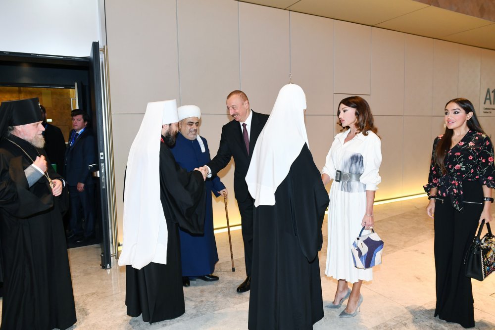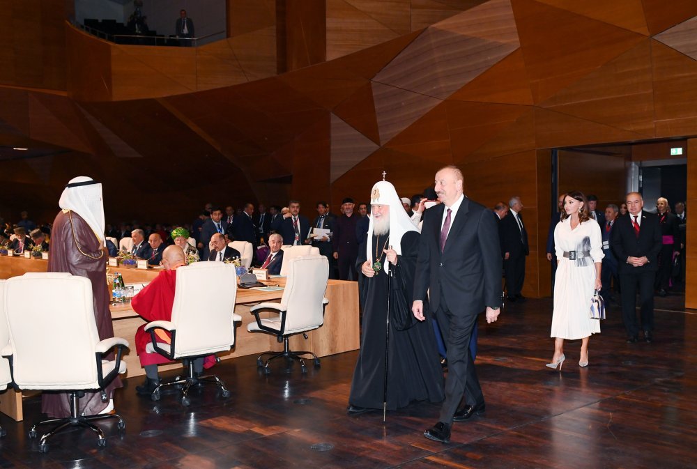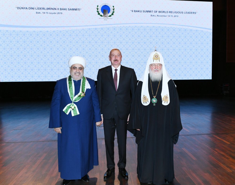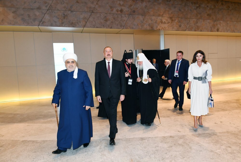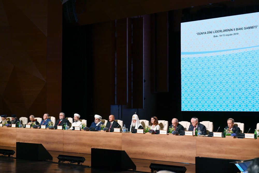 14 ноября в Баку начал работу II Саммит религиозных лидеров мира. Президент Азербайджанской Республики Ильхам Алиев и первая леди Мехрибан Алиева приняли участие в церемонии открытия саммита. Вначале было сделано совместное фото. Саммит начался с чтения аятов священного Корана. Президент Азербайджанской Республики Ильхам Алиев выступил на саммите. Речь Президента Ильхама Алиева -Ваше преосвященство, уважаемый шейх уль-ислам Аллахшукюр Пашазаде. Ваше святейшество Патриарх Московский и всея Руси Кирилл. Уважаемые религиозные деятели, гости, дамы и господа. Сердечно приветствую всех гостей. Хочу сказать всем гостям, принимающим участие во втором Саммите религиозных лидеров мира, «Добро пожаловать!». Данное международное мероприятие представляет огромное значение. Мы гордимся тем, что Азербайджан во второй раз принимает это авторитетное мероприятие. Это еще раз свидетельствует о том, что Азербайджан играет и впредь будет играть важную роль в развитии межкультурного диалога. Считаю естественным проведение в Баку столь авторитетного мероприятия, так как Азербайджан обладает древними межрелигиозными традициями. Независимо от общественно-политического строя, Азербайджан во все времена проявил себя образцовой страной в этом отношении. Представители всех религий, всех этнических групп веками жили в нашей стране как одна семья в условиях мира, дружбы, взаимопонимания. Азербайджан - многоконфессиональная, многонациональная страна, что является нашим большим достоянием. Религиозное и этническое разнообразие – наше большое достояние. За всеми шагами, предпринятыми в Азербайджане в деле утверждения успешного развития, стабильности, стоят религиозная и национальная терпимость, толерантность и мультикультуральные ценности. Нашу древнюю историю отражают в том числе наши религиозные памятники. Они, в первую очередь, свидетельствуют о том, что Азербайджан - древний край. С другой стороны, они показывают, что в различные времена представители различных религий жили, творили и оставили прекрасное историческое наследие в Азербайджане. Должен отметить, мы гордимся тем, что в Азербайджане находится одна из древнейших мечетей исламского мира. Шамахинская джума-мечеть построена в 743 году, несколько лет назад она была капитально отремонтирована. Это – самая древняя после Дербентской мечети мечеть на Кавказе. Одновременно, недалеко от другого исторического города Азербайджана Шеки находится церковь древнего государства – Кавказской Албании, эта церковь имеет большую историю. Она является одной из древнейших церквей Кавказа. В Баку расположен храм огнепоклонников – Атешгях. Это свидетельствует о том, что зороастризм имеет древние корни в Азербайджане. Впоследствии были построены русские православные церкви, синагоги, католическая церковь. Должен также отметить, что Азербайджанское государство прилагает все усилия для охраны наших историко-религиозных памятников и строительства новых религиозных храмов. При финансовой поддержке Азербайджанского государства все религиозные храмы были капитально отремонтированы или заново отстроены. Таким образом, межрелигиозный диалог имеет древнюю историю, и современное Азербайджанское государство привержено этим традициям. Мы верны Исламу. Пропагандируем нашу религию, вместе с те
