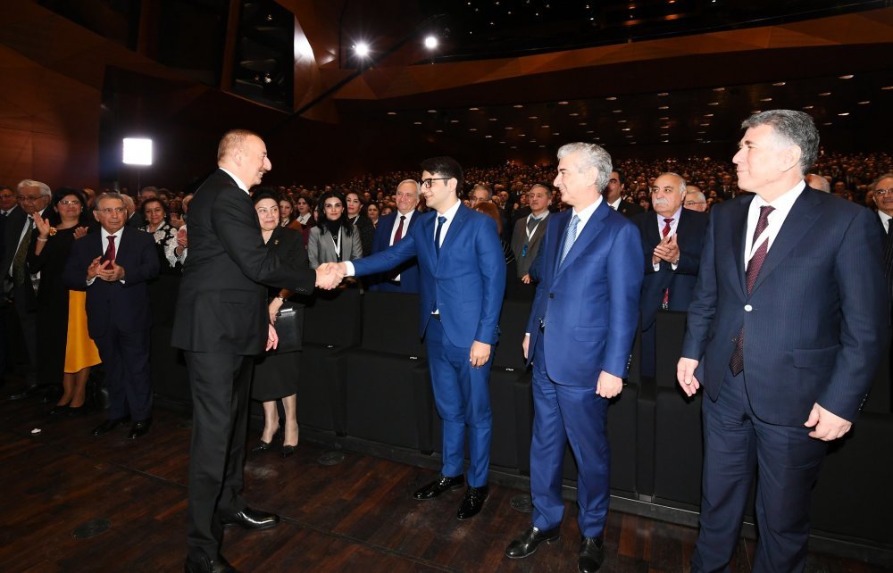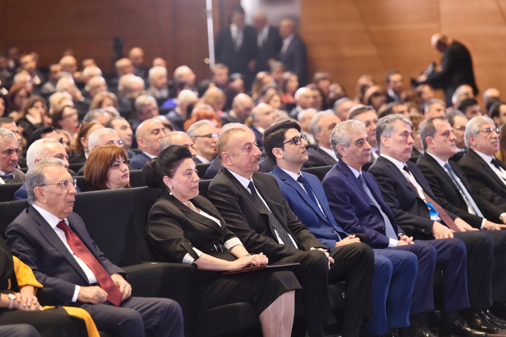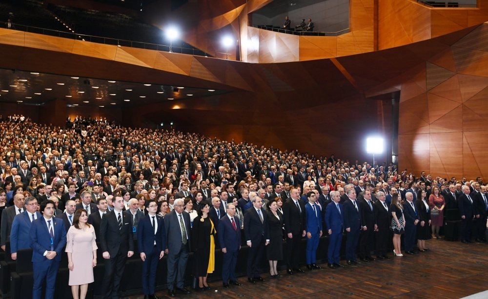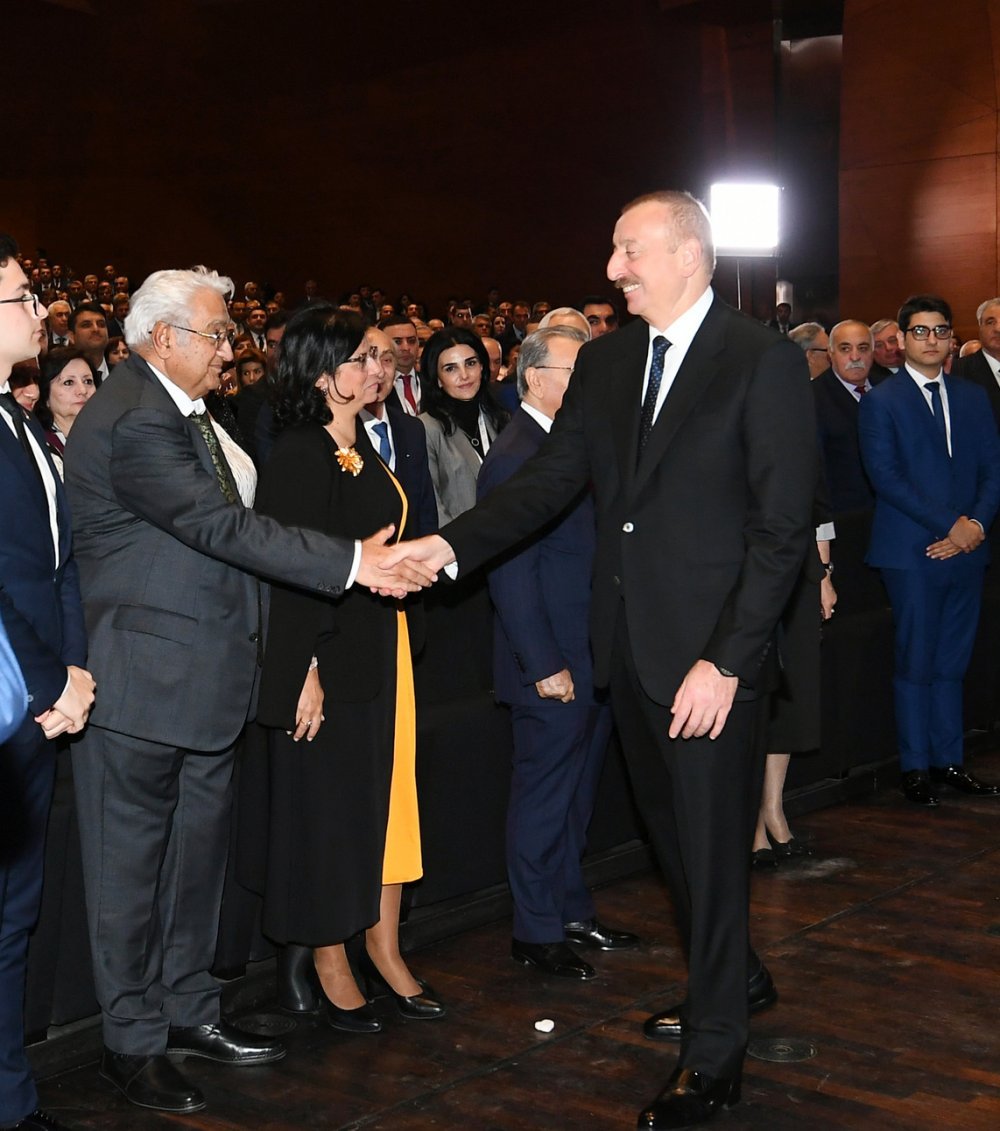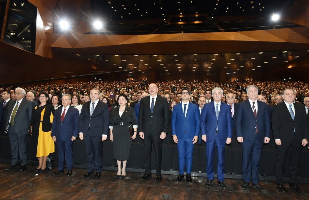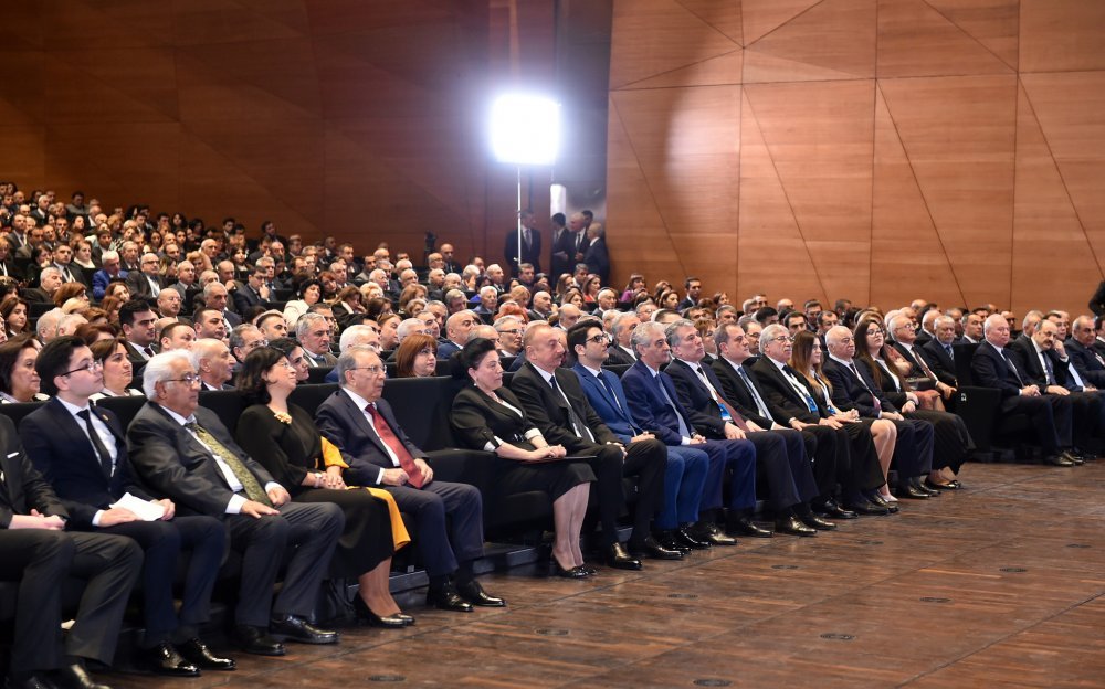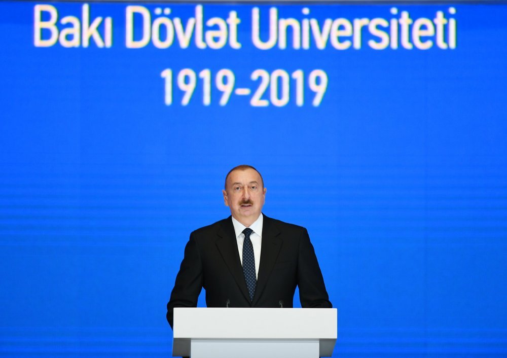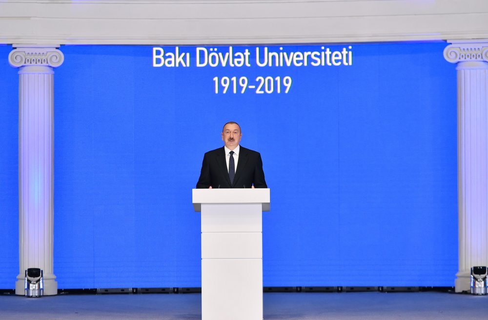 26 ноября в Конгресс-центре прошла церемония по случаю 100-летнего юбилея Бакинского государственного университета. В церемонии принял участие Президент Азербайджанской Республики Ильхам Алиев. Глава государства выступил на церемонии с речью. Затем выступили ректор Бакинского государственного университета Эльчин Бабаев и профессор университета, доктор юридических наук Фируза Аббасова. Позже в исполнении пианиста Этибара Асадлы была представлена композиция «Посвящение» о 60 известных ученых Бакинского государственного университета. На церемонии выступил студент второго курса факультета журналистики Бакинского государственного университета Рашад Иманов. Состоялась презентация цифровой графики, охватывающей научную сферу по 16 факультетам университета. В конце прозвучал гимн Бакинского государственного университета.