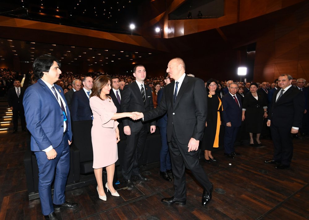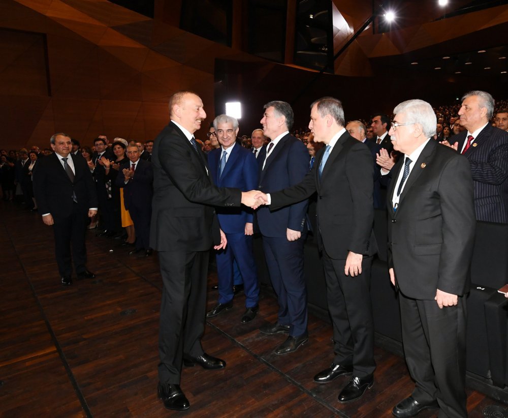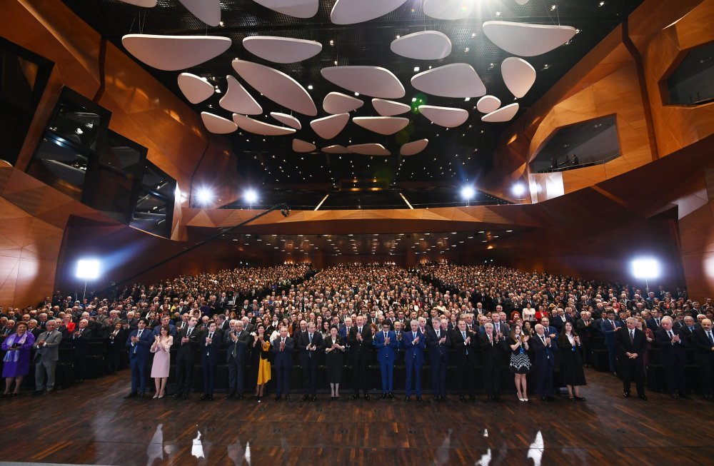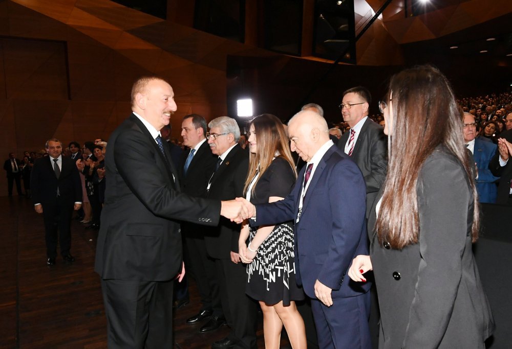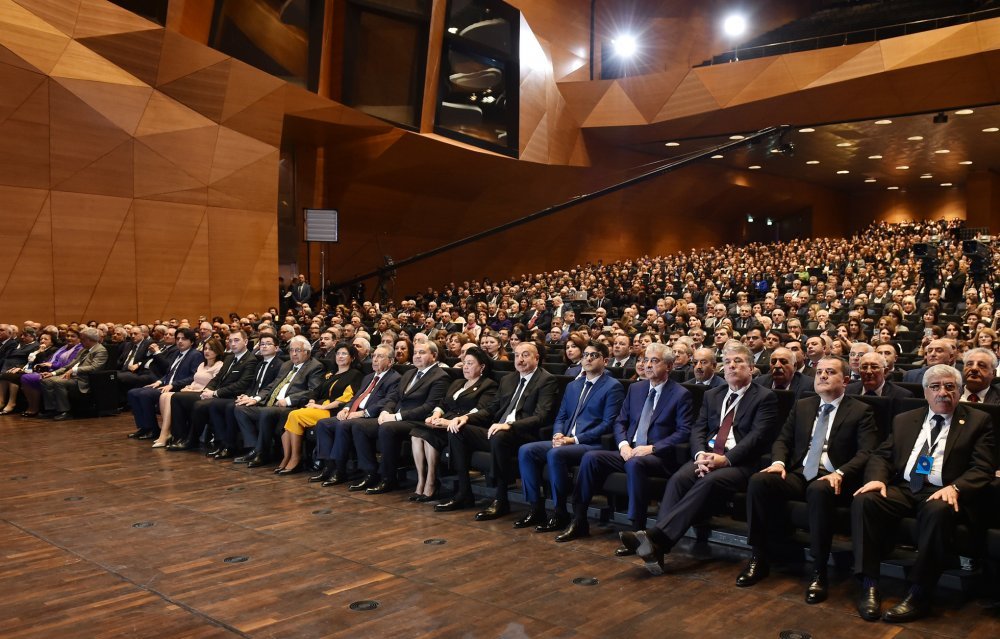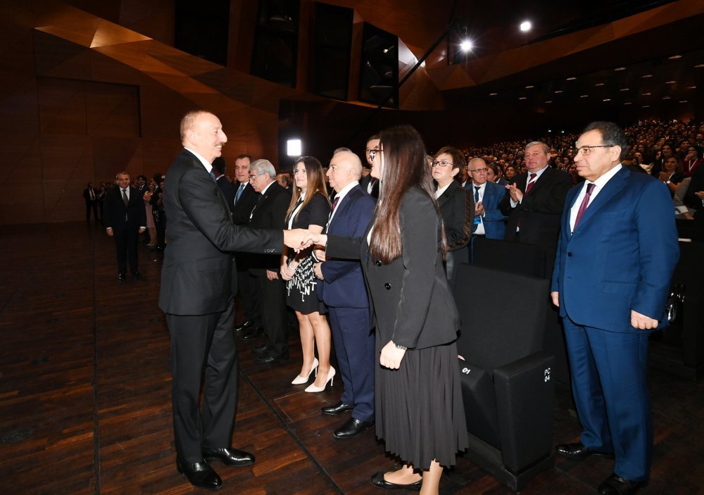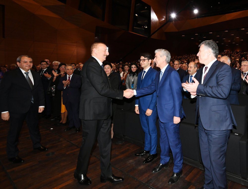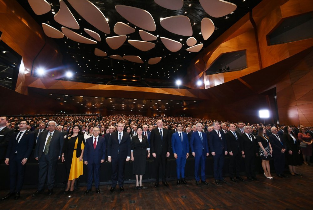 26 ноября в Конгресс-центре прошла церемония по случаю 100-летнего юбилея Бакинского государственного университета. В церемонии принял участие Президент Азербайджанской Республики Ильхам Алиев. Глава государства выступил на церемонии с речью. Затем выступили ректор Бакинского государственного университета Эльчин Бабаев и профессор университета, доктор юридических наук Фируза Аббасова. Позже в исполнении пианиста Этибара Асадлы была представлена композиция «Посвящение» о 60 известных ученых Бакинского государственного университета. На церемонии выступил студент второго курса факультета журналистики Бакинского государственного университета Рашад Иманов. Состоялась презентация цифровой графики, охватывающей научную сферу по 16 факультетам университета. В конце прозвучал гимн Бакинского государственного университета.