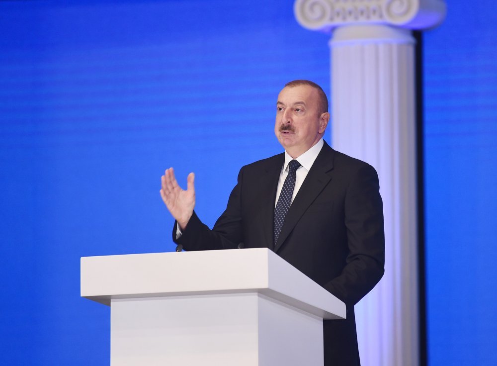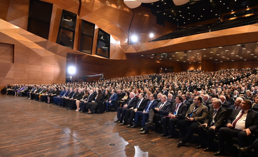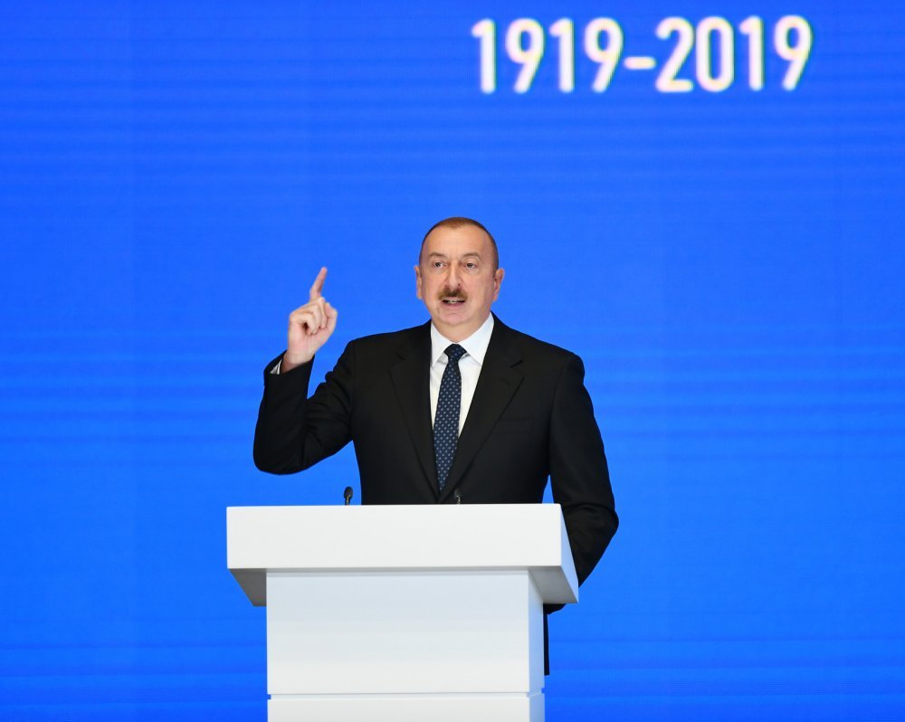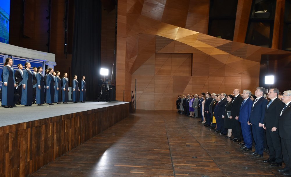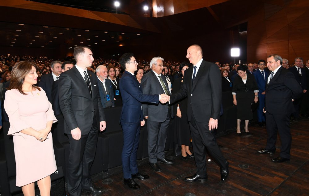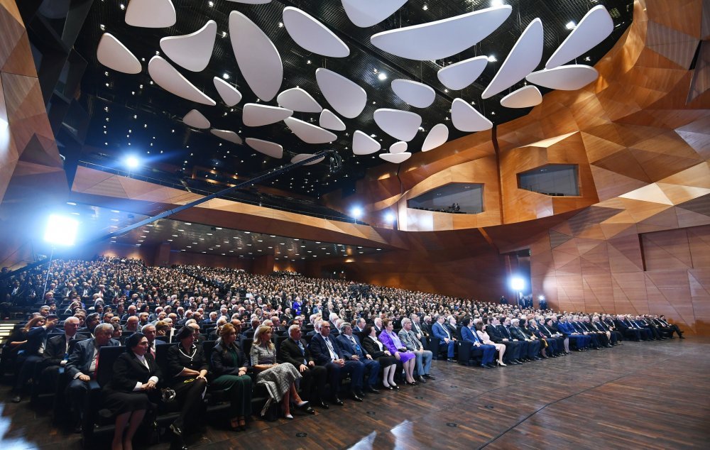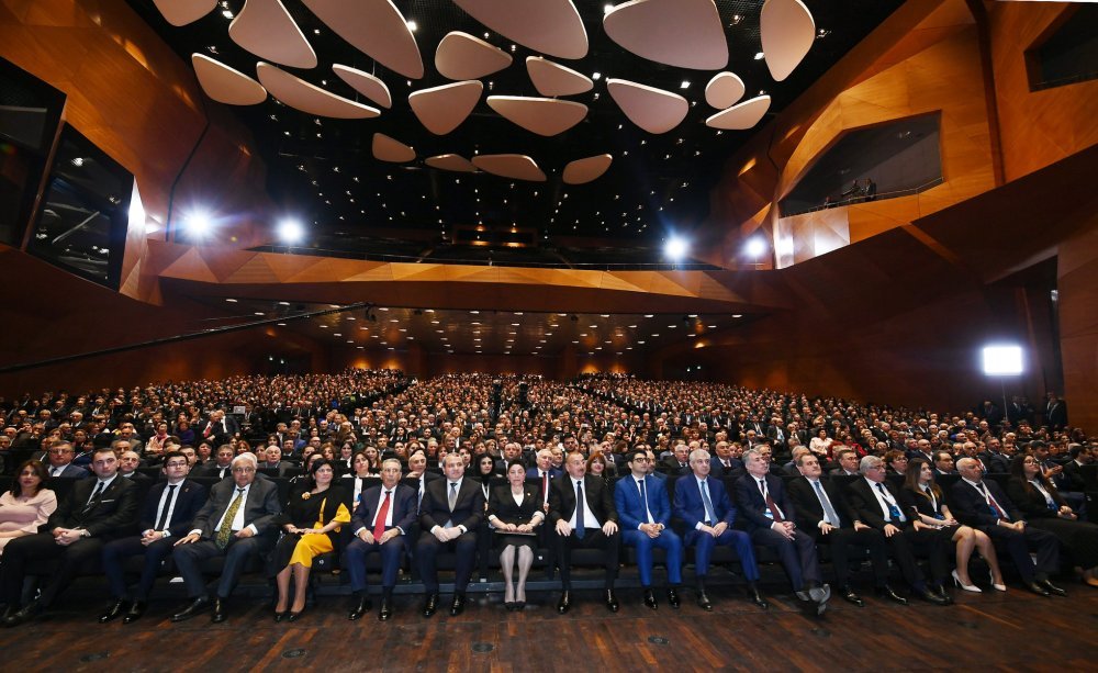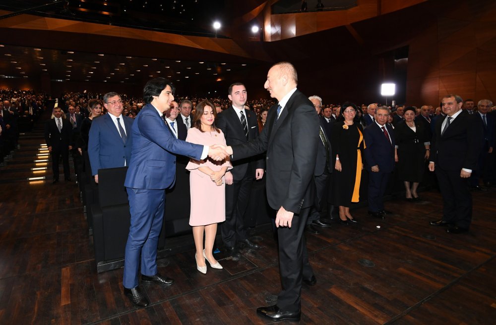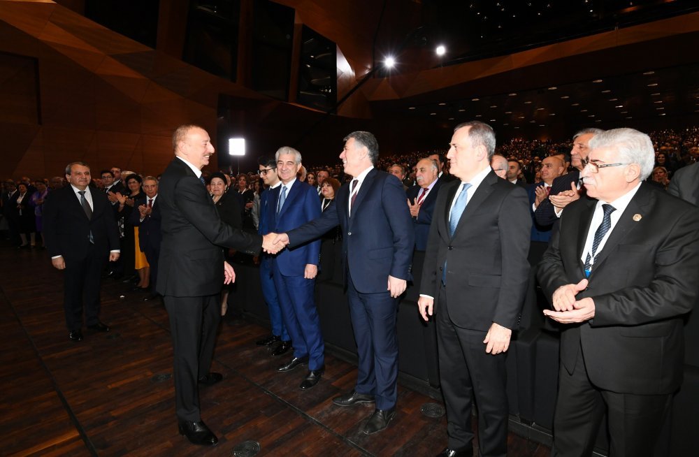 26 ноября в Конгресс-центре прошла церемония по случаю 100-летнего юбилея Бакинского государственного университета. В церемонии принял участие Президент Азербайджанской Республики Ильхам Алиев. Глава государства выступил на церемонии с речью. Затем выступили ректор Бакинского государственного университета Эльчин Бабаев и профессор университета, доктор юридических наук Фируза Аббасова. Позже в исполнении пианиста Этибара Асадлы была представлена композиция «Посвящение» о 60 известных ученых Бакинского государственного университета. На церемонии выступил студент второго курса факультета журналистики Бакинского государственного университета Рашад Иманов. Состоялась презентация цифровой графики, охватывающей научную сферу по 16 факультетам университета. В конце прозвучал гимн Бакинского государственного университета.