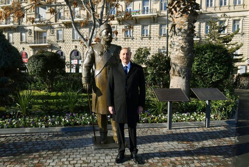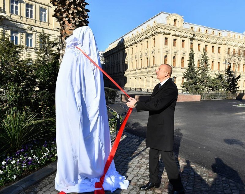 18 января Президент Азербайджанской Республики Ильхам Алиев принял участие в открытии памятника меценату Гаджи Зейналабдину Тагиеву в Баку.